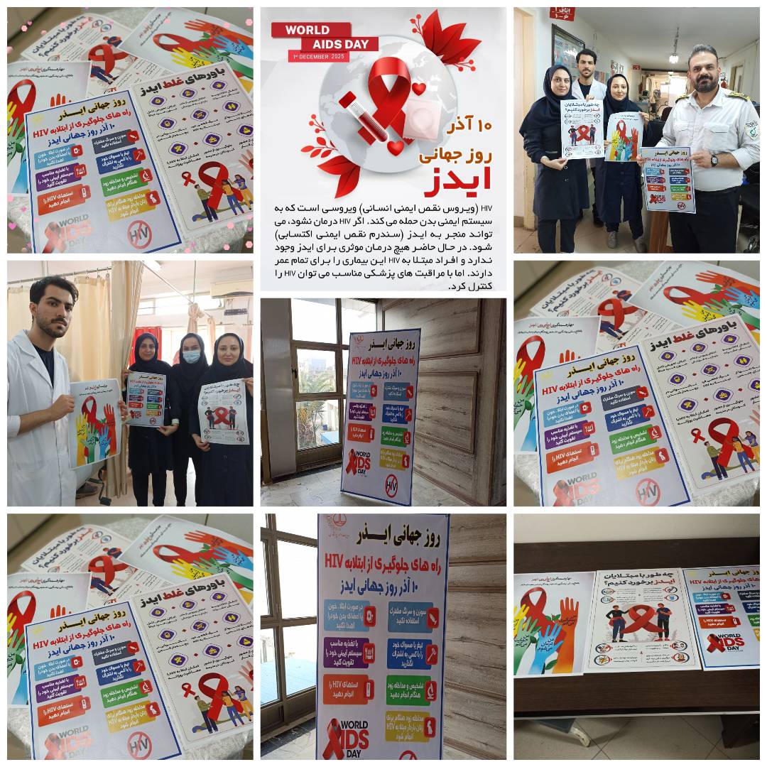 هر سال، اول دسامبر (۱۰ آذرماه) بهعنوان روز جهانی ایدز فرصتی است تا جوامع جهانی بار دیگر بر اهمیت، آگاهی، همبستگی و نوآوری در پاسخ به ویروس اچآی وی تأکید کنند، با وجود پیشرفتهای بزرگ در زمینه تشخیص، مراقبت و درمان، همچنان موانعی همچون انگ اجتماعی، نابرابری در دسترسی به خدمات و چالشهای مالی، مانع از کنترل کامل این بیماری میشوند، مرضیه خوش ضمیر سوپر وایزر آموزش سلامت با همکاری گروه درمان این مرکز جهت آموزش و بالابردن سطح ارتقای پرسنل و بیماران با نشر پوستر در بخش ها و فیلم های آموزشی در کانالهای مربوطه بیمارستان در این امر نقش بسزایی ایفا کردند.