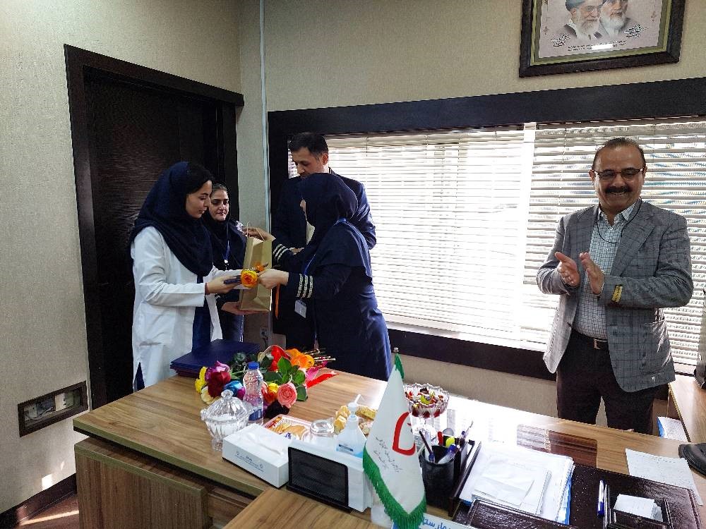 دکتر عباس صدیقی نژاد رئیس بیمارستان حشمت به همراه سجاد متقی مدیریت؛ و صدیقه مسافر- مدیر امور پرستاری این مرکز از پرستاران بخشهای مختلف مرکز تجلیل و قدردانی کردند.