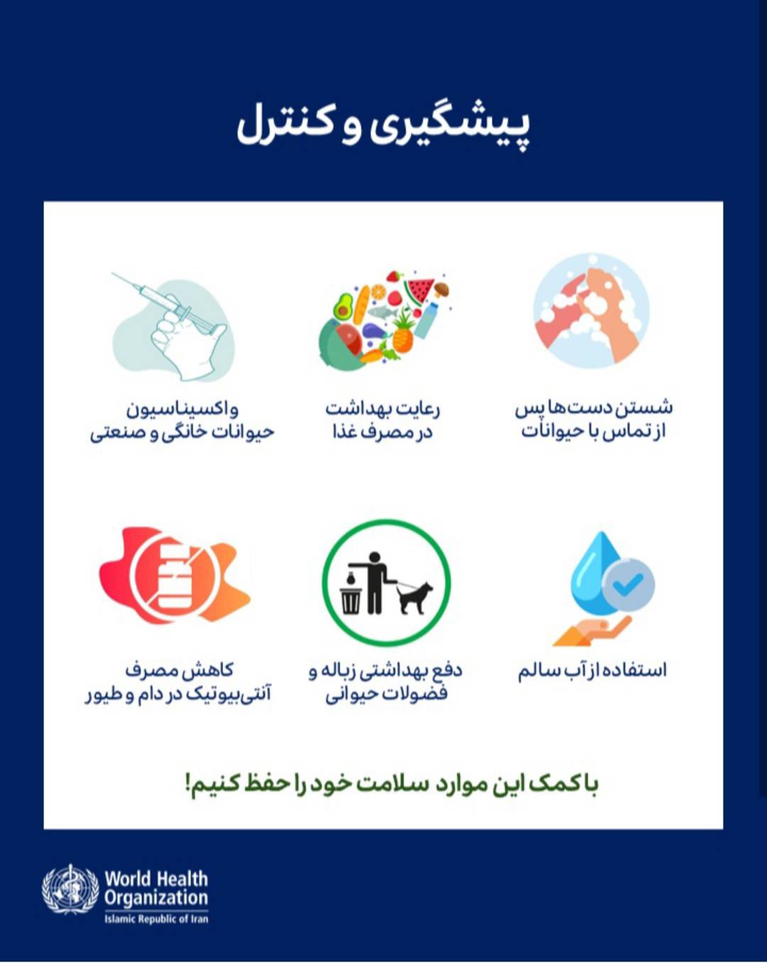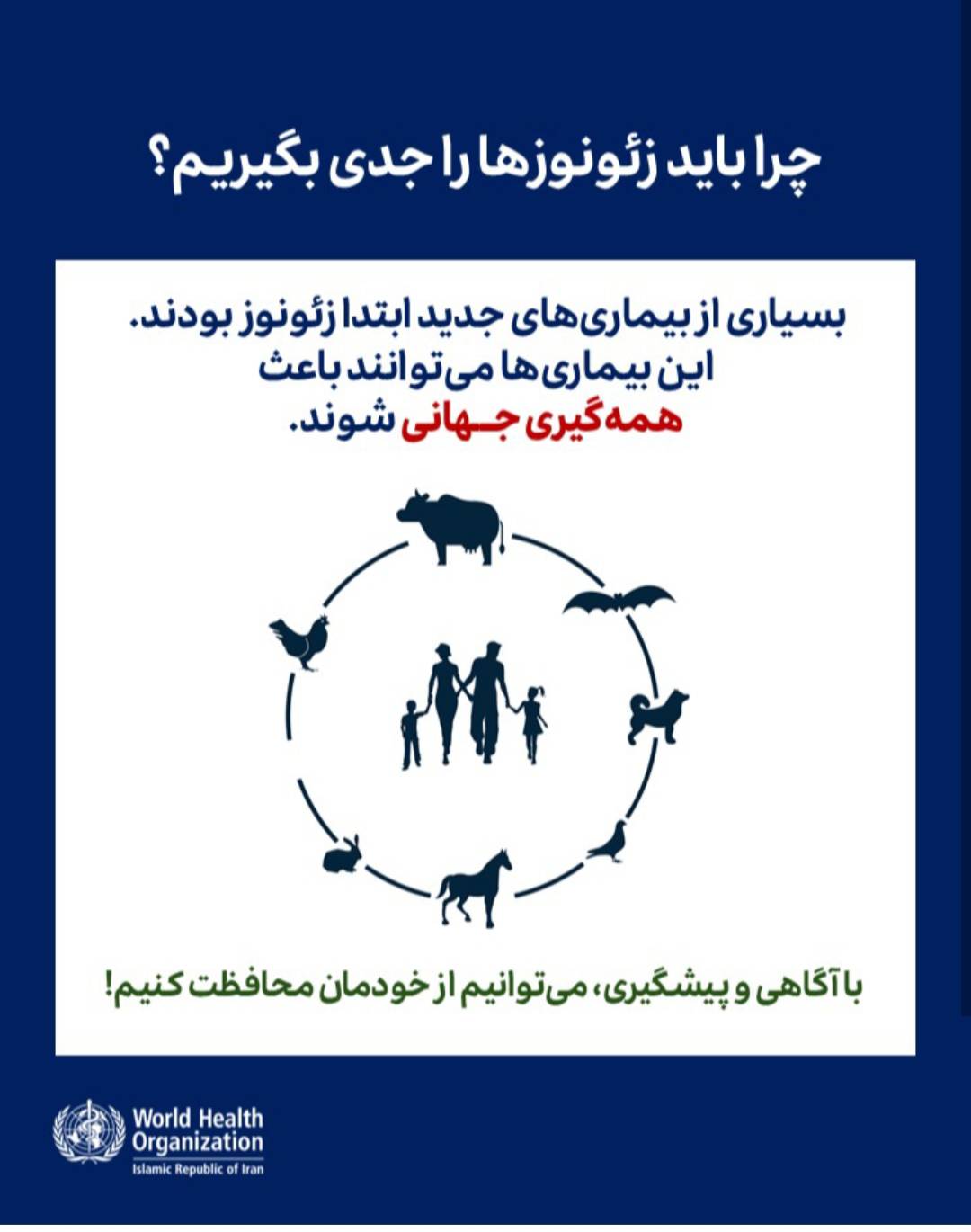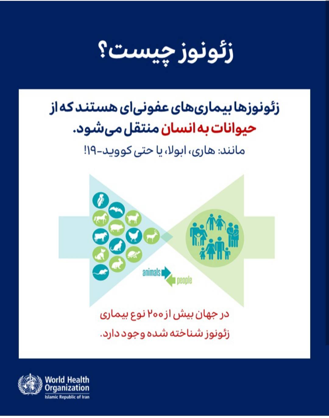 شعار: "یک جهان،یک سلامت، یک آیندهباهم برای پیشگیری از بیماریهای قابل انتقال بین انسان و حیوانات"